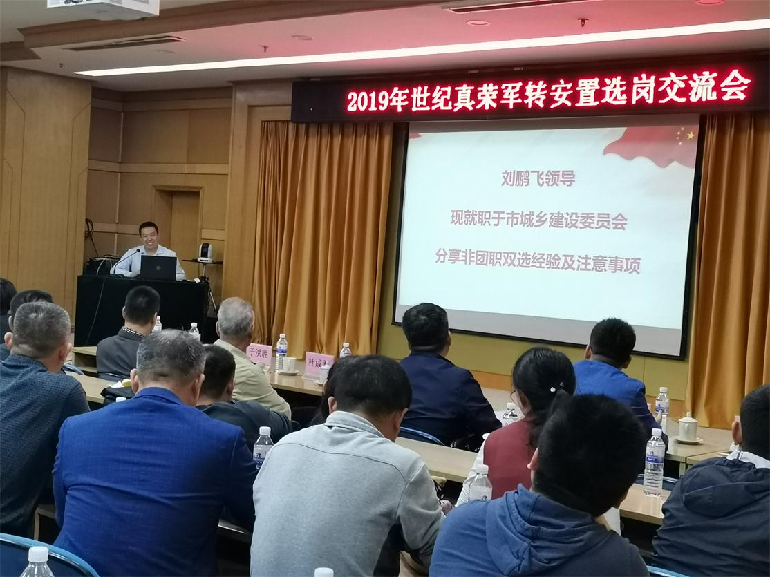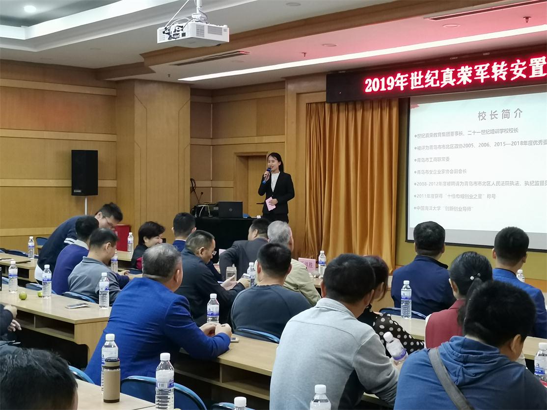 2019年世紀真榮軍轉選崗經驗交流會于10月13日上午在青島疾控中心三樓會議廳舉行,真榮專邀院校知名教授、歷年優秀轉業領導蒞臨現場,共同分享交流近年來崗位情況、選崗經驗與選崗后的一些崗位信息,200余名軍轉干部到場參加。