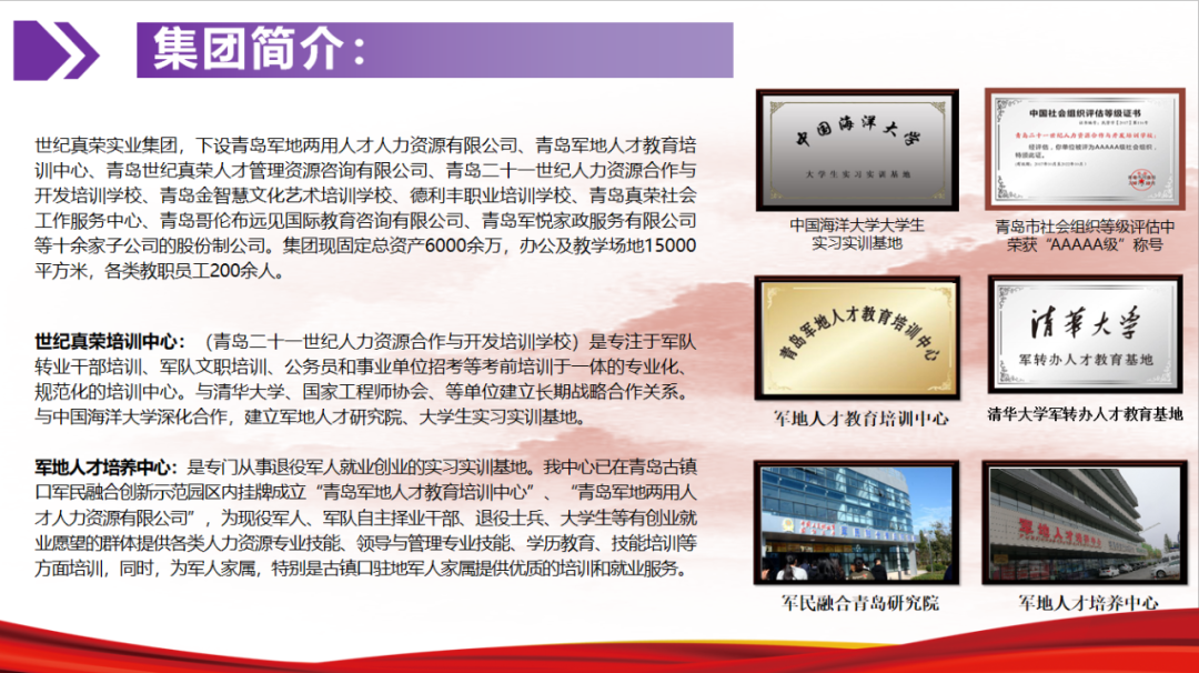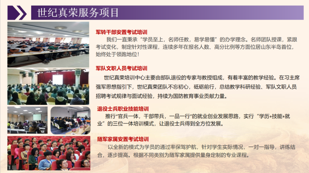 青島世紀真榮專注于軍轉干部培訓,軍隊文職培訓,士兵職業培訓等培訓服務!
