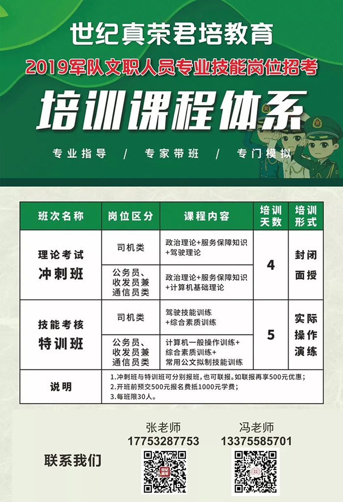熱門關鍵詞: 軍轉干部培訓 軍隊轉業干部培訓 軍轉干部考試培訓 軍轉干部培訓哪家好 士兵職業培訓 軍隊文職培訓 軍隊文職 軍隊文職考試