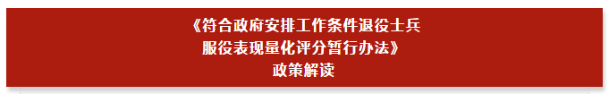 退役軍人事務部、中央軍委政治工作部聯合印發的《符合政府安排工作條件退役士兵服役表現量化評分暫行辦法》(以下稱《辦法》)是對民政部、原總參謀部印發的《符合政府安排工作條件退役士兵服役表現量化評分辦法(試行)》的修訂。修訂后的《辦法》共計10條,著重完善了適用范圍、評分項目和標準、檔案材料登記管理、審檔評分、責任追究等內容,指導性和操作性更強。