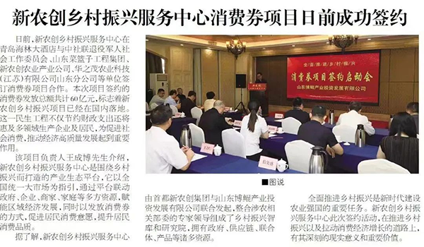 8月8日,新農(nóng)創(chuàng)鄉(xiāng)村振興服務(wù)中心在青島與中社聯(lián)退役軍人社會工作委員會、山東省菜籃子工程集團、新農(nóng)創(chuàng)農(nóng)業(yè)產(chǎn)業(yè)公司、華之茂農(nóng)業(yè)科技(江蘇)有限公司山東分公司等單位簽訂消費券項目合作。青島世紀真榮人才作為中社聯(lián)會員單位代表協(xié)會參加此次啟動會。本次項目簽約的消費券發(fā)放總額共計60億元,標志著新農(nóng)創(chuàng)鄉(xiāng)村振興項目已經(jīng)在國內(nèi)落地。這一民生工程不僅節(jié)約財政支出還將惠及多領(lǐng)域生產(chǎn)企業(yè)及居民,為促進社會消費,推動經(jīng)濟高質(zhì)量發(fā)展起到重要作用。