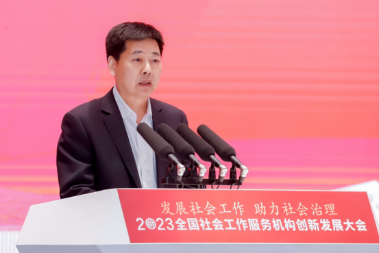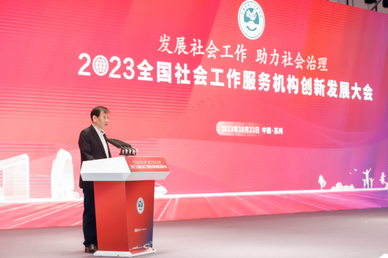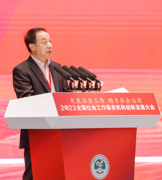 中國社會工作聯合會會長陳存根作主旨發(fā)言