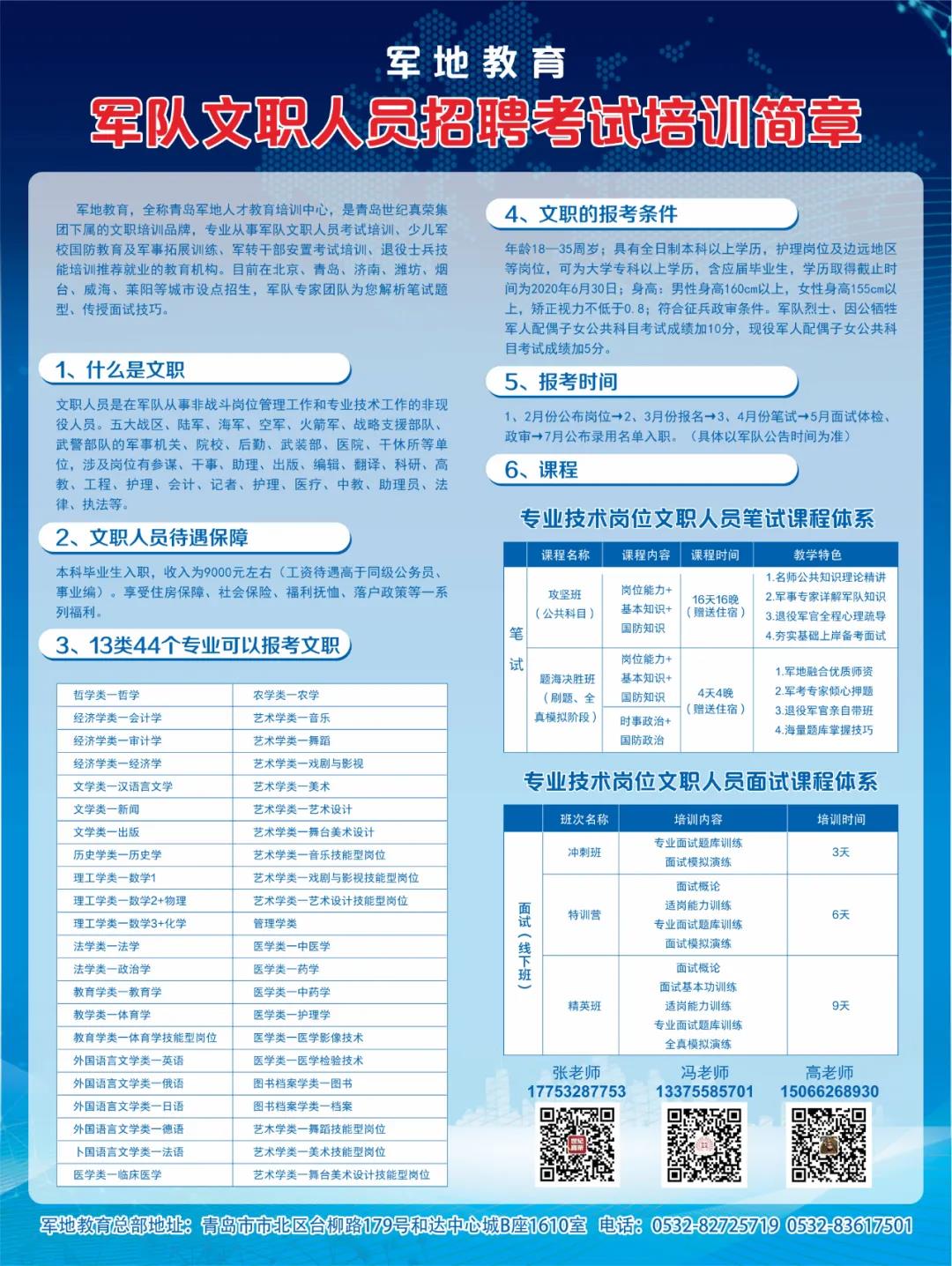 熱門關鍵詞: 軍轉干部培訓 軍隊轉業干部培訓 軍轉干部考試培訓 軍轉干部培訓哪家好 士兵職業培訓 軍隊文職培訓 軍隊文職 軍隊文職考試