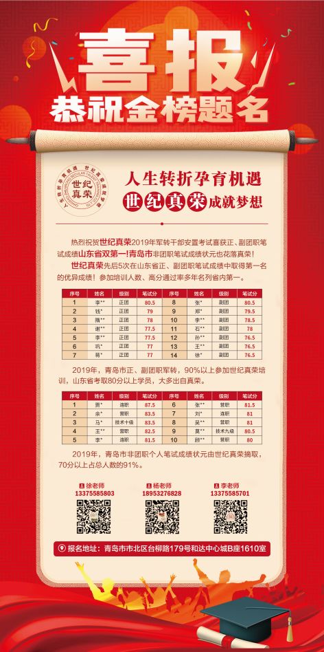 ①世紀真榮喜獲正、副團職筆試成績(均80.5分)山東省雙第一;